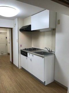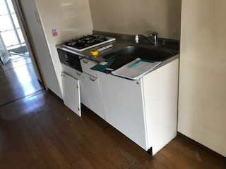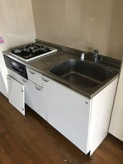 ガスコンロ、キッチン、リノベーション、床、換気扇、浴室